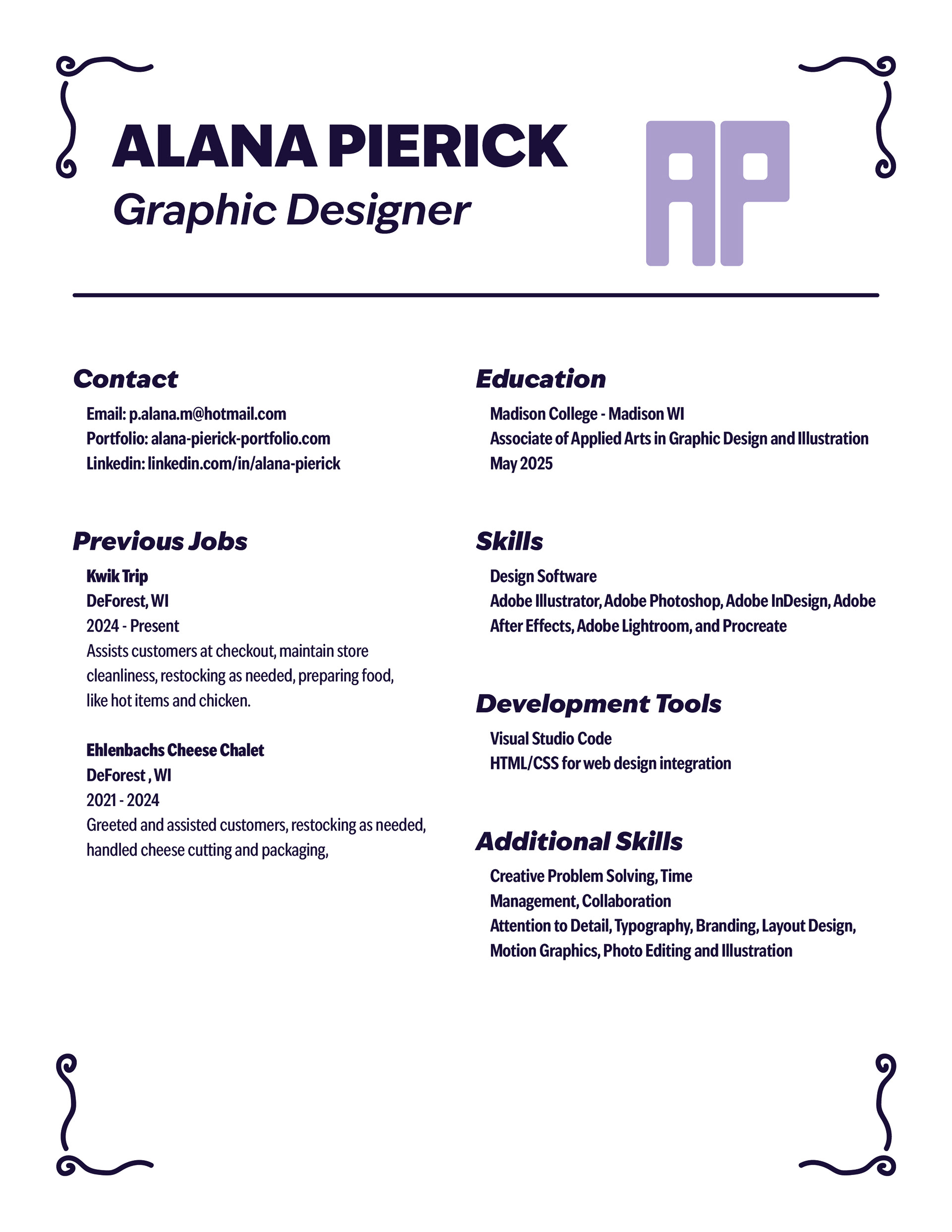 I am a graphic designer from Madison Wisconsin. I have always had a love for art and anything to do with creating with my hands. I love being able to express myself and to all different types of work.